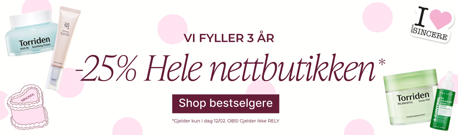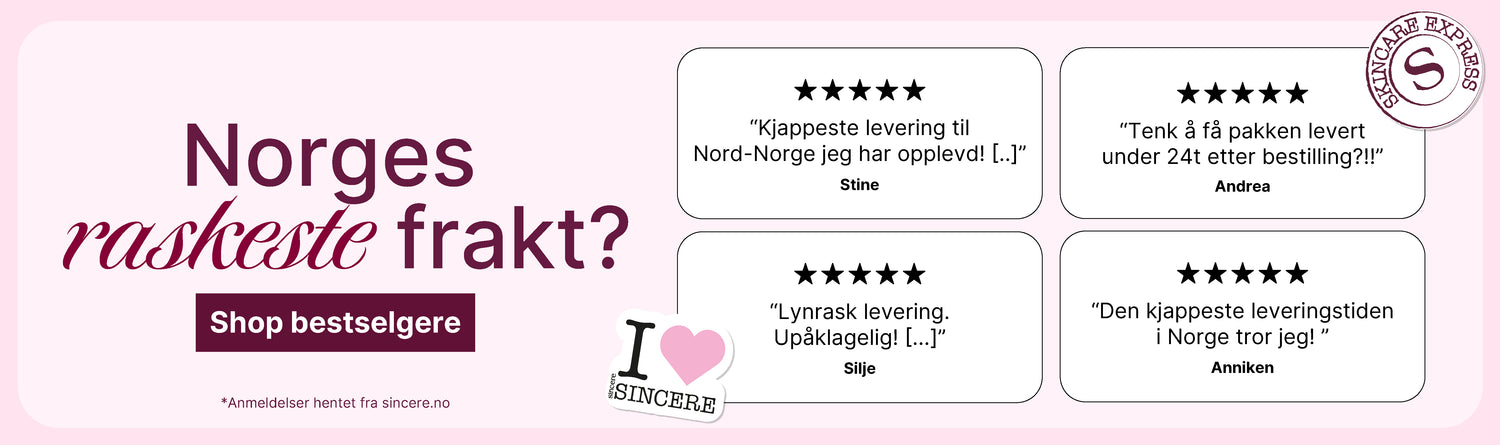 "Veldig fine og flinke folk som jobber i Sincere, og veldig oversiktlig og fin nettside som er lett å navigere og gir relevant og god informasjon. 🥰 alltid fornøyd med varene og kundeservicen her! Min go-to når det gjelder hudpleie!"