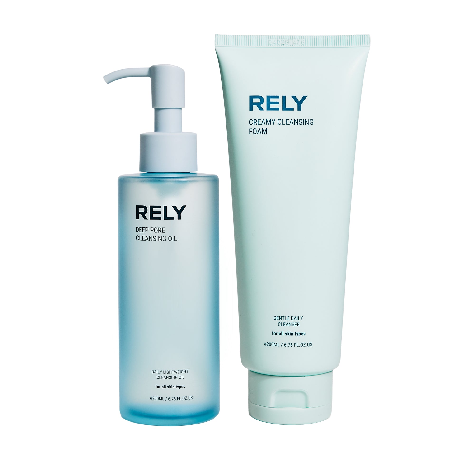 En dobbelrensDuo som passer perfekt sammen, den består av RELY Creamy Cleansing Foam & RELY Deep Pore Cleansing Oil, og kan brukes av alle hudtyper.