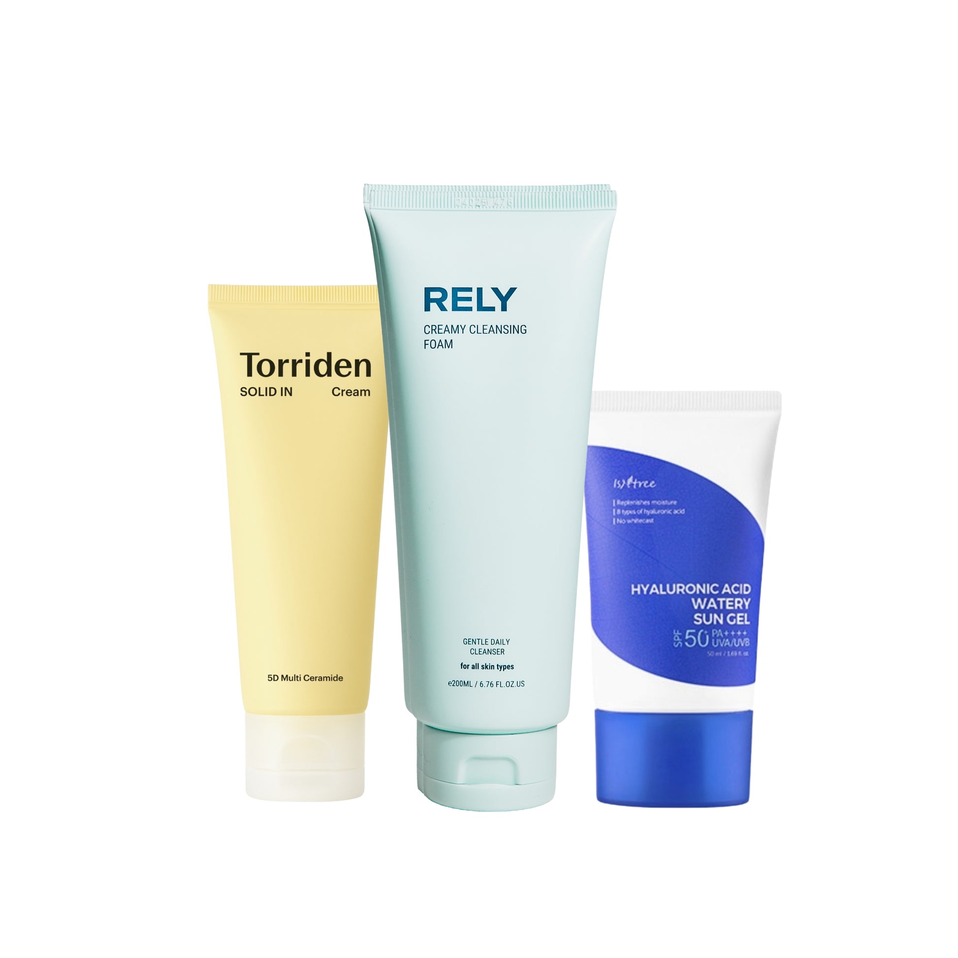 REKKEFØLGE OG BRUK1. RELY Cleansing Foam - Hver morgen og kveld 2. TORRIDEN Cream - Hver morgen og kveld 3. ISNTREE Sun Gel - Hver morgen