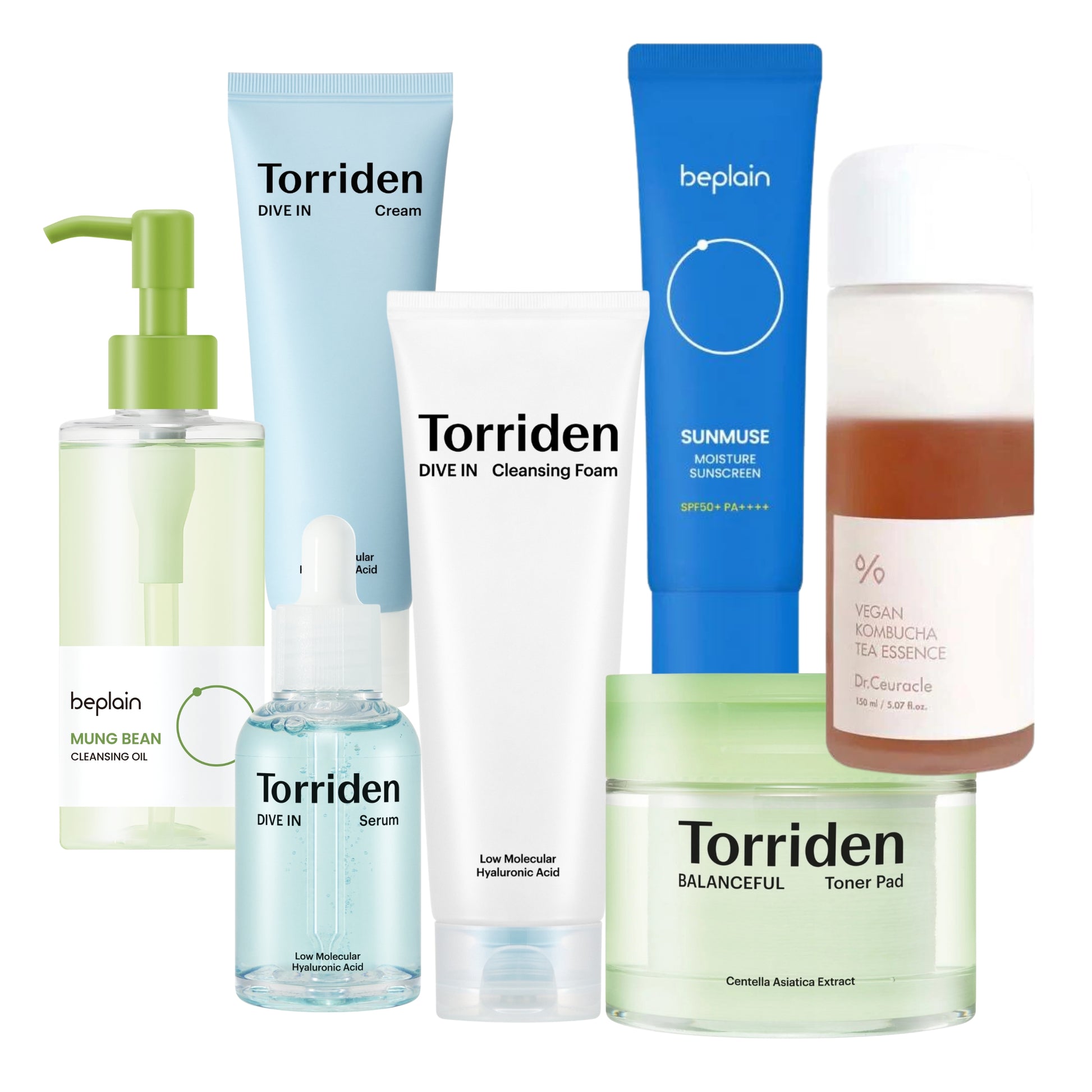 REKKEFØLGE OG BRUK1. BEPLAIN Cleansing Oil - Hver kveld2. TORRIDEN Cleanser - Hver morgen og kveld 3. TORRIDEN Pads - 1-3 kvelder i uken 4. DR.CEURACLE Essence - Hver morgen og kveld5. TORRIDEN Serum - Hver morgen og kveld6. TORRIDEN Dive-In Cream - Hver morgen og kveld7. BEPLAIN Sunmuse - Hver morgen