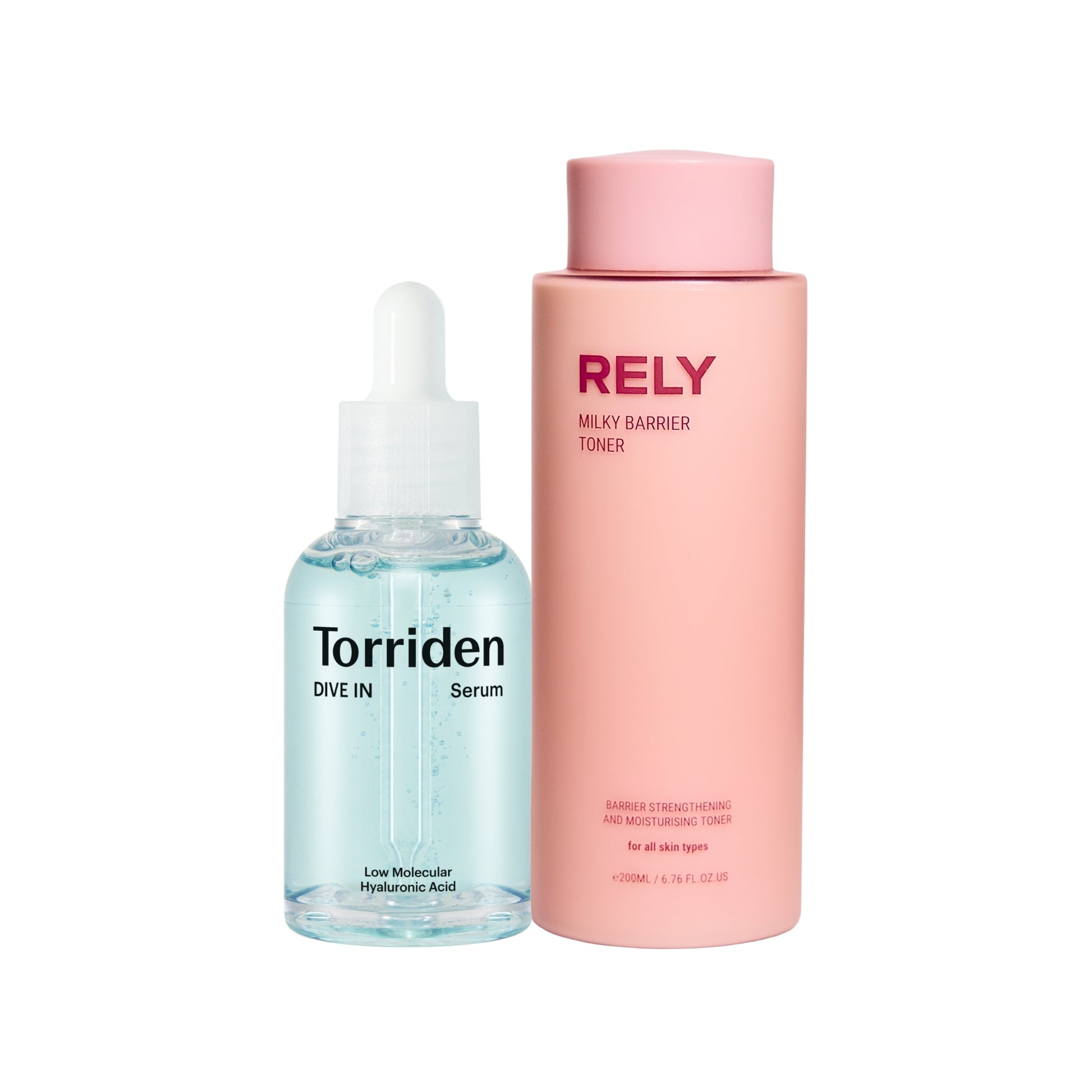 I denne superduoen har vi satt sammen TORRIDEN Dive-In Serum og RELY Milky Barrier Toner. Disse vil sammen jobbe for å gi massevis av fuktighet og pleie til huden. Produktene brukes sammen både morgen og kveld, for best effekt. Disse produktene går godt overens med alle andre ingredienser, og kan derfor enkelt kombineres med dine andre produkter.