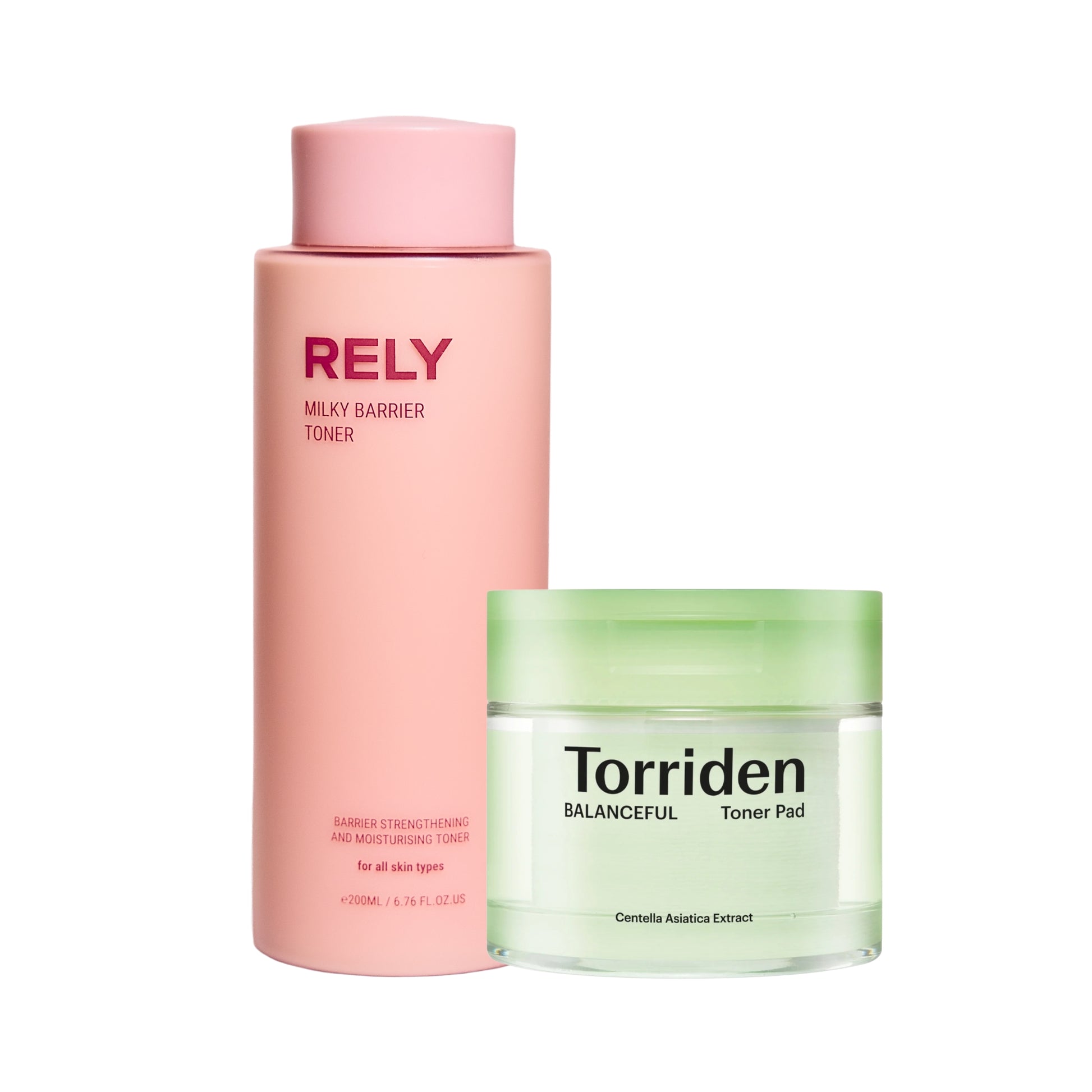 I denne superduoen finner du Torriden toner pads + RELY milky barrier toner, som sammen skal bidra til mer glød i huden. RELY toner kan brukes hver morgen og kveld, mens Torriden toner pads kun bør brukes max 3 kvelder i uken, på nyrenset hud og etterfulgt av RELY toner💕